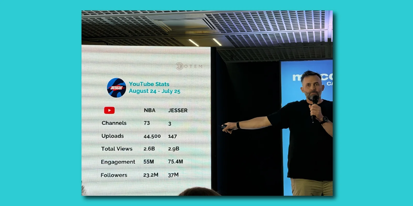 There was an amazing data point shared by Steve Crombie of Totem during Evan Shapiro’s “Broadcasting to Next Generation Audiences via YouTube”, showing how they had helped basketball creator outperform the NBA on YouTube.